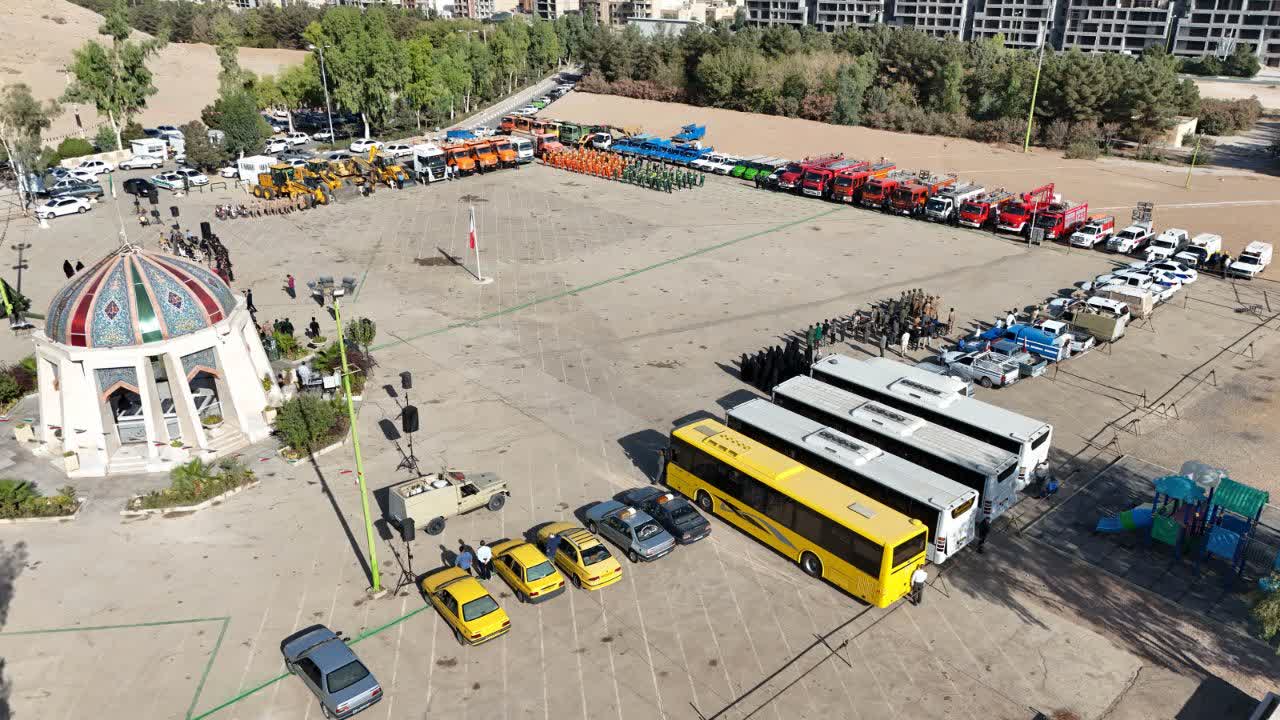 در این نمایش میدانی، نهادهایی همچون اداره آب و فاضلاب، برق، گاز، مخابرات، معاونت خدمات شهری، سازمان حملونقل همگانی، آتشنشانی و خدمات ایمنی، جمعیت هلالاحمر و نیروهای بسیجی، بخشی از امکانات و آمادگیهای خود برای مواجهه با شرایط بحرانی را به نمایش گذاشتند.